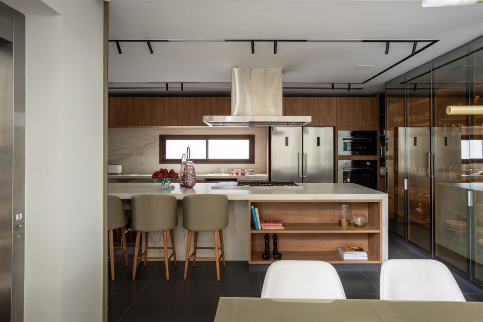 “Ela também tem o poder de ser um ponto focal na composição na cozinha. Com diversos modelos, nossa decisão considera o estilo do projeto, mas principalmente o volume de ar que é capaz de extrair, de acordo com o tamanho do ambiente e a frequência de uso”, diz Alexandre Pasquotto.
