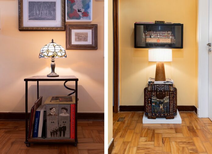 Diferenças: o abajur com cúpula é responsável por uma luz difusa, ou seja, espalha a luz de maneira uniforme, enquanto a luminária de mesa gera uma luz direcionada / Projeto do arquiteto Gustavo Vargas e fotos de Emerson Rodrigues