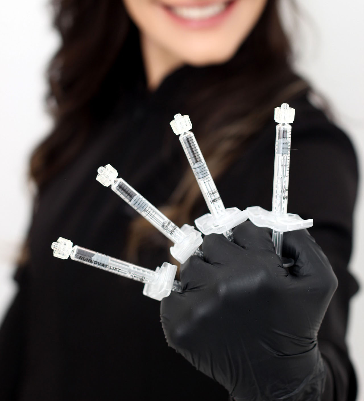 O ácido hialurônico é bastante utilizado nos preenchimentos faciais, com baixo índice de alergias. Ele pode ser utilizado desde em preenchimentos de sustentação facial, com aplicações mais profundas, até em aplicações superficiais, melhorando a hidratação e a textura da pele.