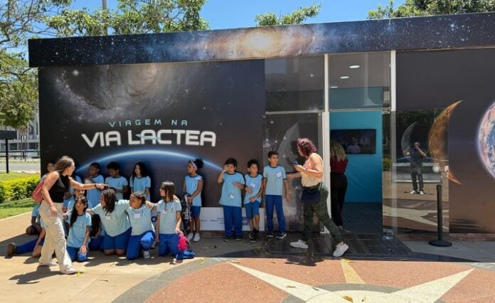 O projeto Viagem na Via Láctea, em exibição na área externa do Planetário de Brasília, tem recebido, de forma exclusiva durante as manhãs, cerca de 800 alunos de escolas públicas do Distrito Federal. A visitação especial ocorre ao longo desta e da próxima semana, permitindo que os estudantes explorem o simulador imersivo e a exposição interativa sobre o sistema solar. Instituições como Escola Classe 42, 306 Recanto das Emas já participaram da visitação, enquanto a Classe 502 Itapoã Parque visitará o espaço nos dias 24 e 25 de março.