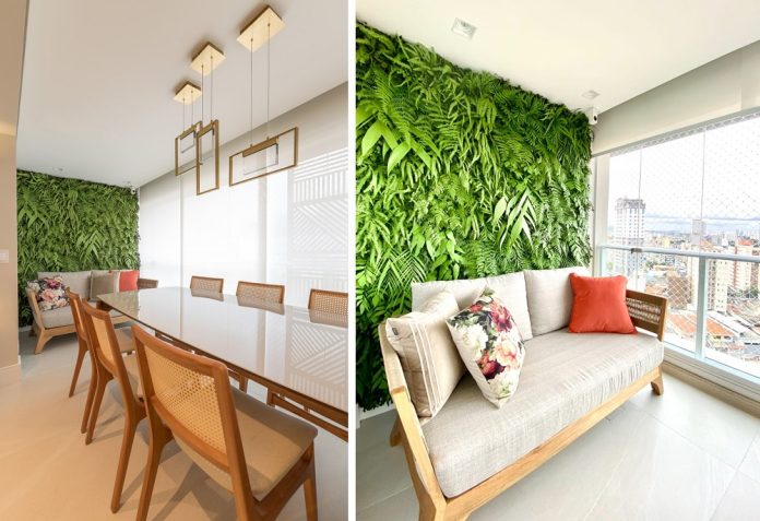 Segundo ela, o jardim vertical é uma das aplicações mais comuns, já que ocupa pouco espaço e demanda menos cuidados na comparação com as plantas naturais. Além disso, sua durabilidade garante um efeito prolongado e prático, ainda que algumas folhas possam cair ao longo do tempo.