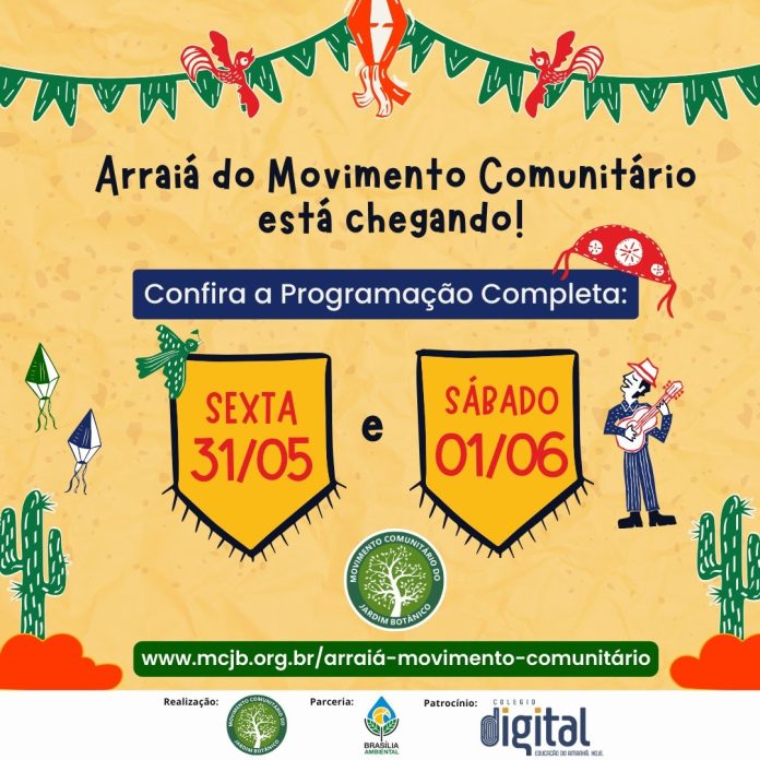 Preparem-se para a temporada junina mais animada do DF! O Movimento Comunitário do Jardim Botânico abre as festividades de São João no JB com o tradicional Arraiá do Movimento Comunitário, que esse ano acontecerá nos dias 31 de maio e 01 de junho, no Centro de Práticas Sustentáveis do Brasília Ambiental, abrindo a temporada de festas na região. Evento é gratuito e aberto para toda a família.