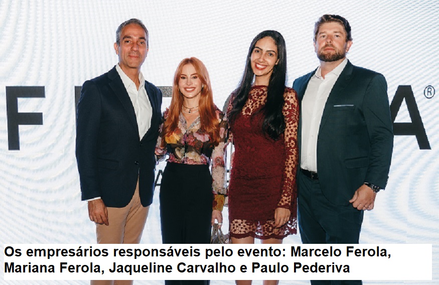 Início Bartz e Ferola Private Brokers reúne autoridades e líderes da arquitetura em evento beneficente no Lago Sul Os empresários responsáveis pelo evento Marcelo Ferola, Mariana Ferola, Jaqueline Carvalho e Paulo Pederiva