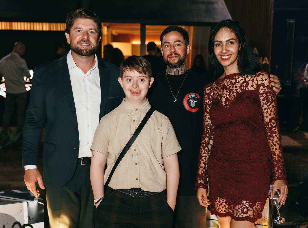 Início Bartz e Ferola Private Brokers reúne autoridades e líderes da arquitetura em evento beneficente no Lago Sul Paulo Pederiva e Jaqueline Carvalho da Bartz com os artistas Eduardo Moraes e Gabriel Veiz