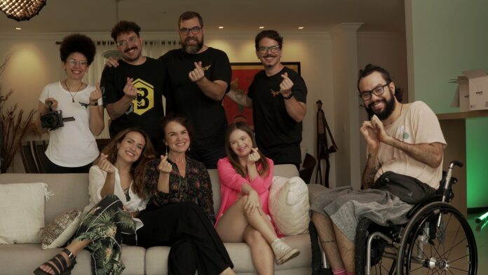 Web série traz histórias inspiradoras vividas por pessoas com deficiência e marca posição na luta contra o preconceito e capacitismo. Na foto, visita da equipe da websérie à casa da incluencer Viti (rosa)