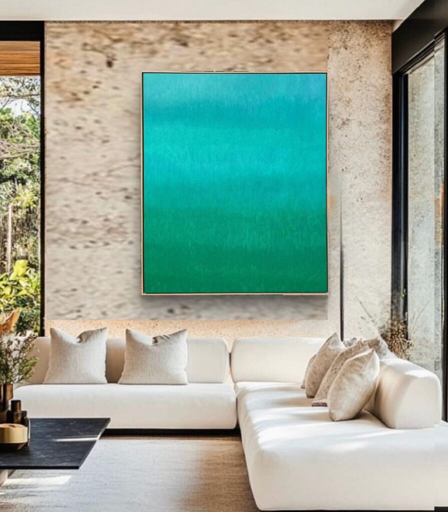 Cores terrosas, tons neutros quentes, variações de branco, preto e pigmentos naturais seguem em alta, especialmente quando aplicados em telas com relevos sutis, camadas orgânicas ou técnicas que evidenciam o processo manual. A arte passa a conversar com materiais como madeira clara, tecidos naturais, pedras e paredes com acabamento mais bruto ou acetinado, criando um equilíbrio entre o contemporâneo e o artesanal.