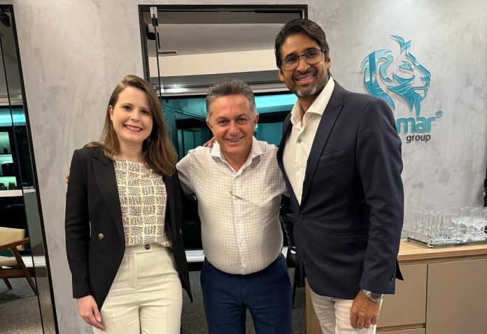 A embaixadora de RH Juliene Gandhi, o CEO da Ligamar Group e apresentador do Podcast DNA de Leões, Manoel Alexandre, e o palestrante e especialista em tecnologia da informação Tarcísio Lisboa
