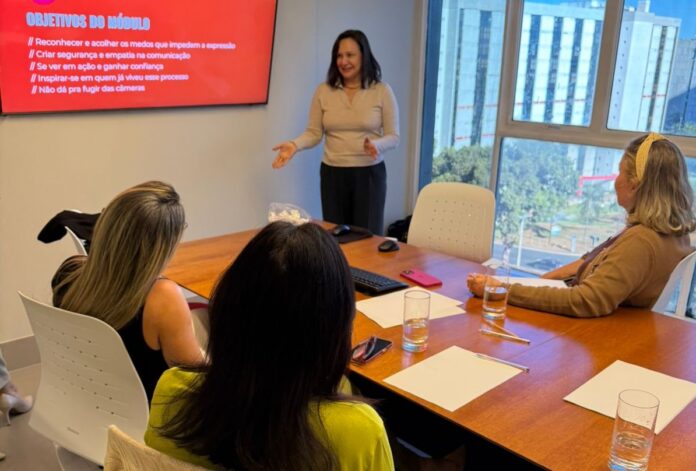Com uma linguagem acolhedora e prática, o curso é conduzido por três especialistas em comunicação: Regina Trindade, Patrícia Santiago e Mônica Siqueira. O curso, rápido, com apenas 3h30 de duração, fala sobre storytelling e posicionamento — e acontece em um dos ambientes mais simbólicos de liderança em Brasília: a Câmara de Dirigentes Lojistas – CDL-DF, que cedeu seu estúdio de podcast para uma vivência real de expressão.