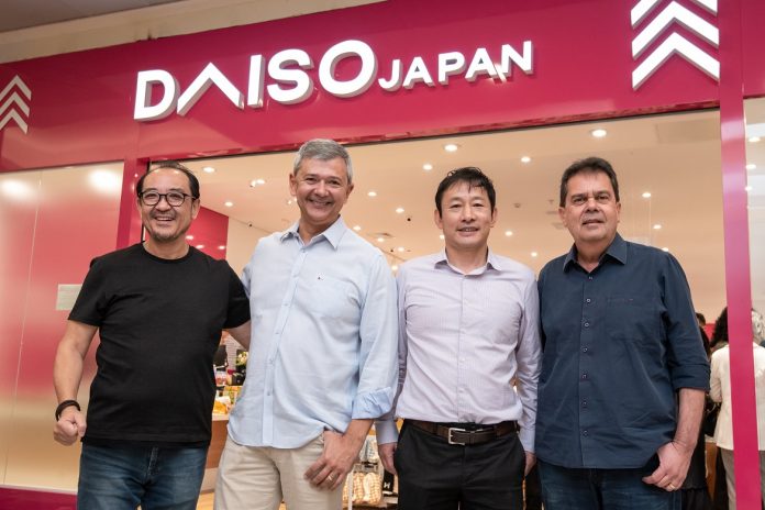 Na foto acima: Marcos Hirai, gerente de expansão da DAISO; Marcos Atayde, superintendente do TGS; Keisuke Ohno, presidente da DAISO Brasil; e Geraldo Mello, diretor de shoppings da PaulOOctavio