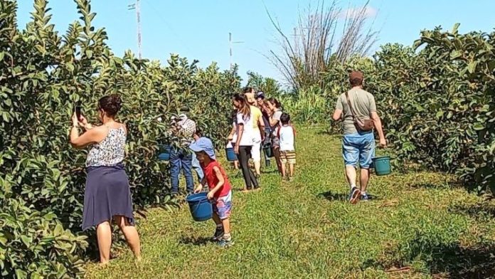 Com tamanho fora dos padrões das goiabas comuns, a fruta cultivada na propriedade é a tailandesa, conhecida pelo tamanho gigante. Alguns frutos chegam a pesar 800 gramas. A fruta, que é carnuda e tem menos sementes na comparação com outras variedades, chamou atenção das crianças. Neste domingo, foram realizadas quatro visitas nos horários de 9h, 11h, 14h e 16h. O segundo dia de realização do evento, com mais quatro turmas, vai acontecer no próximo domingo (10).
