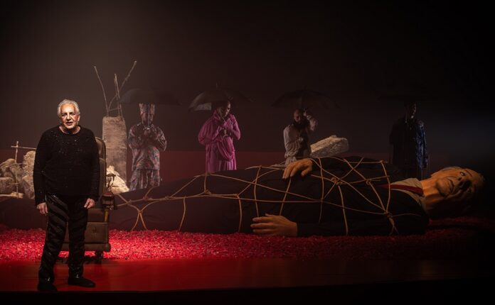 Escrito e dirigido por Gerald Thomas, especialmente para o ator, a obra transita entre a tragédia e o humor, o otimismo e o pessimismo. Foto: Matheus José Maria