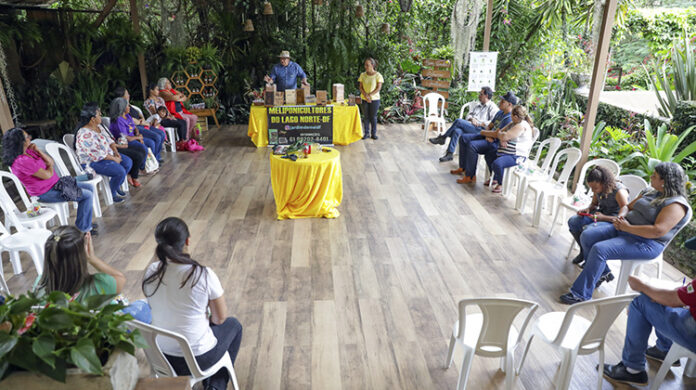 Um grupo de 15 produtoras familiares dos núcleos rurais São José e Rio Preto, em Planaltina, participou, nesta quinta-feira (25), de uma aula sobre os benefícios da criação de abelhas sem ferrão. O objetivo do encontro foi introduzir as mulheres no universo da meliponicultura – como a atividade é chamada – e, assim, ampliar as alternativas de geração de renda das famílias.