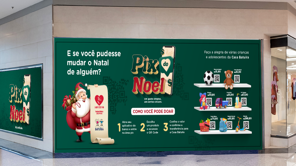 A ação une o espírito de solidariedade natalino com uma solução criativa e tecnológica, numa estrutura que simula uma vitrine, com fotos dos produtos. O cliente só precisa escolher um produto com o valor desejado, abrir seu aplicativo do banco para ler o QR Code, conferir o valor e confirmar a transferência para a Casa da Criança Batuíra, que deve ser no valor mínimo de R$ 15,90.