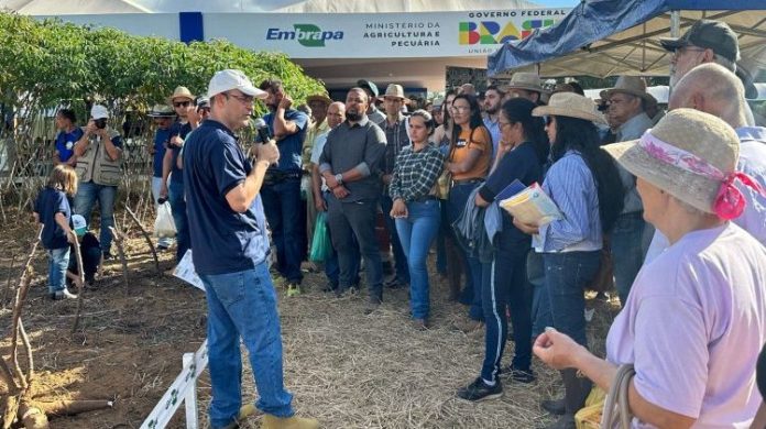 Produtores rurais e visitantes da AgroBrasília 2024 participaram da apresentação realizada pela Embrapa sobre novas cultivares de mandioca de mesa e mandioca de indústria para farinha e polvilho na região do Cerrado. Todas as tecnologias foram validadas de forma participativa com produtores da região, em parceria com a Emater-DF.