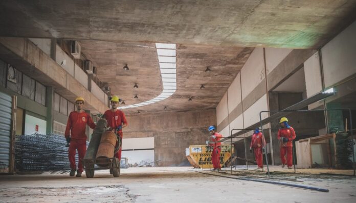 As obras na Sala Martins Pena do Teatro Nacional Claudio Santoro seguem em compasso acelerado desde que começaram no final do ano passado. O valor do investimento desta primeira parte é de quase R$ 50 milhões, prometendo gerar cerca de 350 empregos até o fim dos trabalhos.