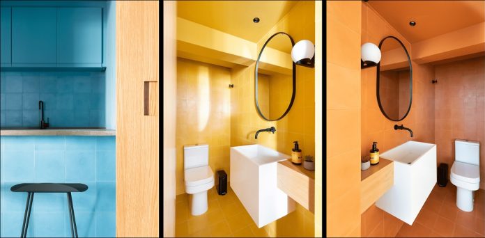 Neste imóvel, no Edifício Itália, no coração de São Paulo, cozinha e lavabos são monocromáticos, vibrantes e receberam ladrilhos hidráulicos com rejuntes imperceptíveis. Projeto da Rawi Arquitetura + Design | Fotos: Alexandre Disaro |