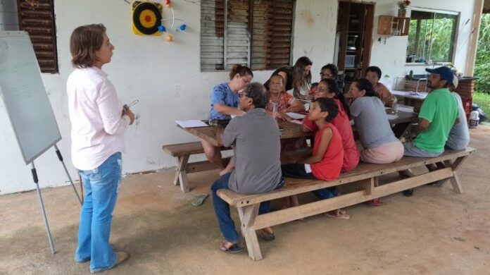 Maíra e Roseli Oliveira, também da Emater-DF em São Sebastião, se reuniram com assentados do 15 de Agosto para repassar orientações iniciais sobre o uso dos kits. “Muitos de vocês já têm experiência com frutas, mas é importante relembrar algumas informações”, detalhou Roseli, destacando a poda de condução, a adubação duas vezes por ano, o uso de materiais adequados, como a tesoura de poda, e o aproveitamento de esterco de animais e mamona como fontes de nitrogênio.