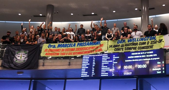 Com a galeria lotada de servidores comemorando, a Câmara Legislativa do Distrito Federal (CLDF) aprovou nesta terça-feira (12), em processo simbólico, a proposta de iniciativa do Governo Distrital que promove a reestruturação da carreira Socioeducativa no quadro de pessoal – projeto de lei nº 1.425/2024. Essa área do serviço público faz parte da Secretaria de Justiça e Cidadania (Sejus-DF), por meio da Subsecretaria do Sistema Socioeducativo (Subsis). A carreira, a partir deste momento, terá servidores que ocupavam o cargo de técnico socioeducativo e passam a ser enquadrados como agentes.