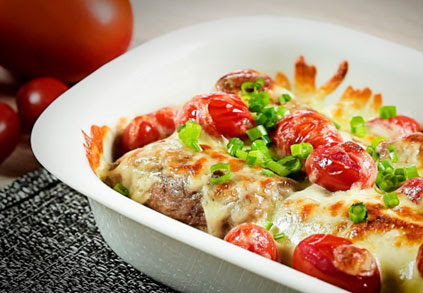 Para os filés, coloque os medalhões um a um dentro de um saquinho para alimento e, com o auxílio de um martelo de carne, abra os bifes. Tempere-os com sal e pimenta-do-reino, recheie com um pouco de molho pesto, uma parte da mussarela ralada e do tomate fatiado. Enrole os bifes e prenda as laterais com os palitos. Em uma frigideira antiaderente, coloque a manteiga e sele os rolinhos. Em seguida, acomode-os em um refratário. Cubra com os tomates cereja e o restante da mussarela. Leve ao forno por 15 a 20 minutos. Salpique cebolinha para finalizar.