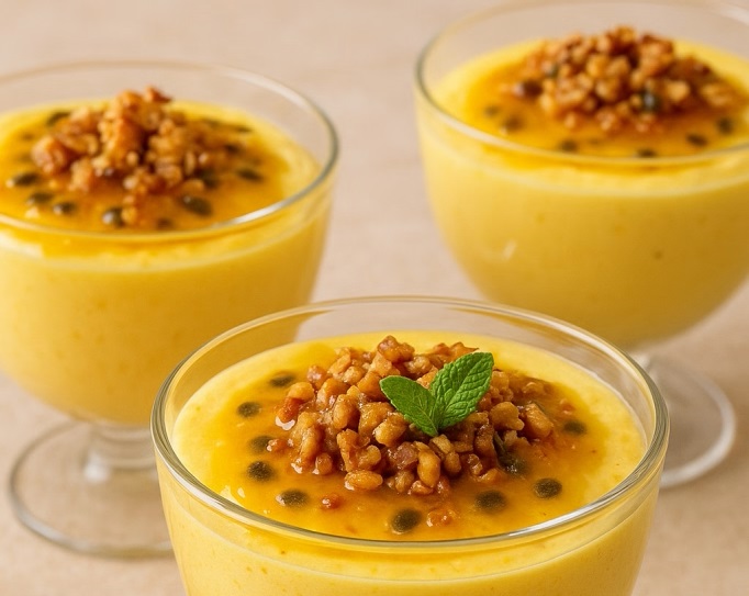 MOUSSE DE MARACUJÁ REFRESCANTE COM CROCANTE DE CASTANHAS