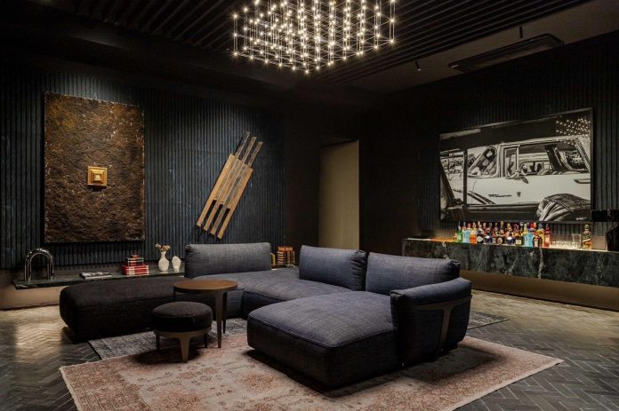 Com tamanhos, cores e formatos totalmente personalizáveis, os painéis ripados da Trisoft, usados pelo arquiteto Danilo Cajaíba neste home theater, são recomendados para o tratamento acústico em diversos tipos de ambientes | Projeto Acústico: Audium | Foto: Gabriela Daltro