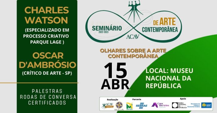 “Olhares Sobre a Arte Contemporânea” será o tema do Seminário realizado pela ACAV/DF (Associação Candanga de Artistas Visuais). O evento acontece no Auditório do Museu Nacional da República no sábado, dia 15/04, das 8 às 19h.