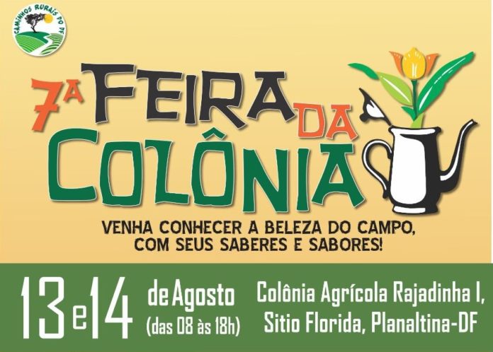 Nos dias 13 e 14 de agosto de 2022, a Emater-DF, em parceria com os produtores rurais do Núcleo Rural Rajadinha, realizam a VII edição da Feira da Colônia – Circuito Rajadinha. A Feira é um evento anual que tem como objetivo promover o Circuito Turístico da Rajadinha, que visa integrar atividades aos arranjos produtivos locais da agricultura familiar, incentivando a comercialização da produção associada ao turismo rural.